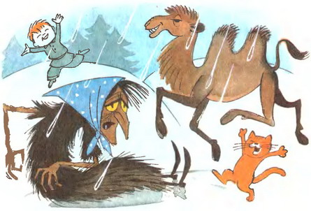 Я, Кузя и верблюд, промокшие насквозь, плясали вокруг перепуганной Засухи и кричали ей прямо в ее корявые уши: