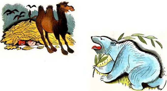 — Спасайтесь! — закричал верблюд. — Это белый медведь. Он заблудился. Бродит тут и ругает Виктора Перестукина. Спасайтесь!