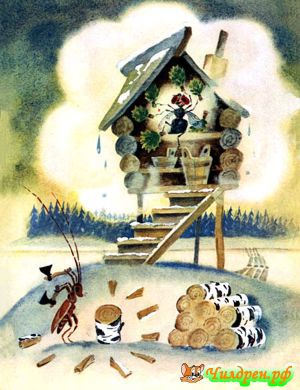 А сороки- Белобоки Поскакали по полям, Закричали журавлям: «Горе! Горе! Крокодил Солнце в небе проглотил!»