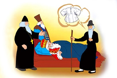 Царский сын обрадовался, велел снять с этого человека рубашку, а ему дать за это денег, сколько он захочет, а рубашку отнести к царю.
