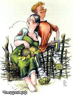 - Лентяйка ты! - кричит он на нее. - Я и пашу и кошу, а ты даже обед ленишься мне в поле принести!